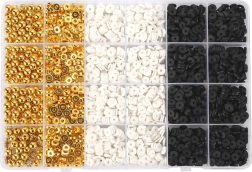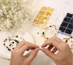 Mit unserem kreativen Set für Perlen können Sie nicht nur Armbänder, sondern auch Halsketten, Ohrringe oder Ringe herstellen – Ihrer Fantasie sind keine Grenzen gesetzt! Klassische Farben wie Weiß, Schwarz und Gold stellen sicher, dass der fertige Schmuck nicht nur einzigartig, sondern auch sehr elegant ist. Handgefertigter Schmuck gehört heute zu den modischsten Accessoires.
