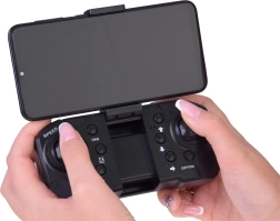 Die Steuerung ist äußerst einfach. Laden Sie den Akku per USB-Kabel, schalten Sie das Gerät ein und koppeln Sie es mit der Fernbedienung. Wenn die Drohne startklar ist, leuchtet die Signallampe dauerhaft.
