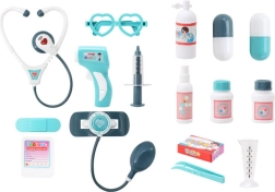 Das Set enthält eine große Auswahl an medizinischen Instrumenten, mit denen Kinder verschiedene Szenarien aus dem Gesundheitswesen nachspielen können. Bestandteil des Sets ist ein Stethoskop mit Licht- und Soundeffekten, das die charakteristischen Geräusche dieses Geräts realistisch wiedergibt – für noch authentischeres und spannenderes Spiel.