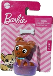 Diese Barbie-Hundefigur beeindruckt mit ihrer Niedlichkeit und der bunten Gestaltung. Der Hund sitzt in einem kleinen, lila Körbchen und wird von einem weißen Knochen begleitet, was ihn zum perfekten Accessoire für Kinder ab 3 Jahren macht.