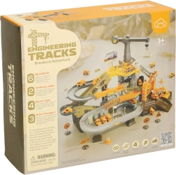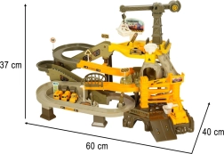 Die erhellende Baustellenbahn mit elektrischen Elementen ist so konzipiert, dass sie den Kindern ein vollständiges Eintauchen in die Rolle des Bauleiters ermöglicht. Dank des automatischen Fahrzeugbewegung können sich die Kinder auf kreative Szenarien konzentrieren und Bauarbeiten leiten.