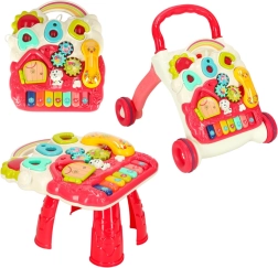 Entdecken Sie den multifunktionalen Lauflernwagen und das Aktivitätszentrum, die Ihr Kind ab 6 Monaten begleiten. Dank der cleveren 4-in-1-Lösung verwandeln Sie das Panel im Handumdrehen in einen Tisch, einen Schiebelauflernwagen oder ein unterhaltsames Bettspielzeug – ganz ohne Werkzeuge. Interaktive Elemente mit Lichtern und Klängen fördern die Sinne und die natürliche Neugier der Kinder.