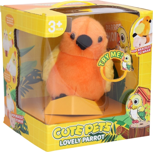 Der niedliche, wiederholende Vogel sorgt für stundenlangen Spaß und Lachen. Dank der kompakten Größe von 17 cm liegt er gut in Kinderhänden und wird zum Lieblingsbegleiter. Am rechten Flügel starten Sie den Vogelgesang, am linken Flügel wiederholt der Vogel alles, was Sie sagen.