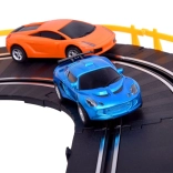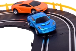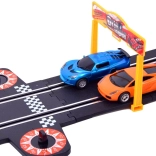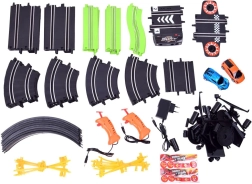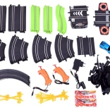Das Set enthält alle benötigten Elemente für das Rennen, wie gerade Abschnitte, Kurven, Schleifen und Streckenmarkierungen.