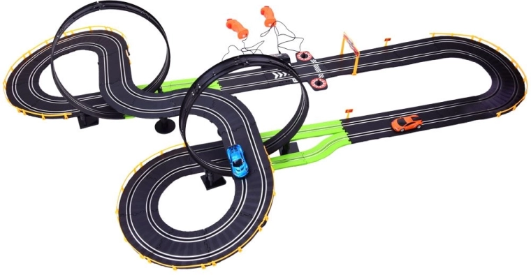 Die Rennstrecke enthält zwei große Schleifen, die Spannung und Geschwindigkeit bieten, ideal für kleine und große Fans.