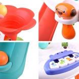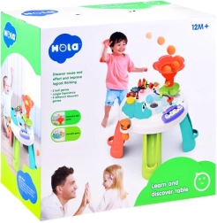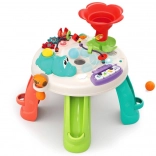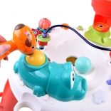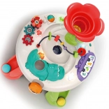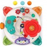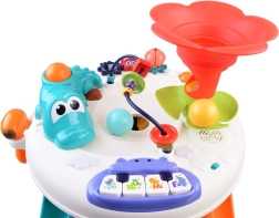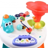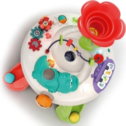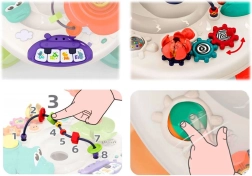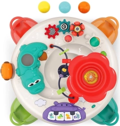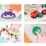 Der interaktive Kindertisch ist mit verschiedenen Elementen ausgestattet, die sensorische und motorische Entwicklung fördern. Durch Geräusche, Licht und Bewegung zieht er die Aufmerksamkeit der Kinder und hält sie beschäftigt.