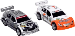 Zwei Autos mit detaillierten Abziehbildern und aerodynamischem Design sorgen für Geschwindigkeit und Wettbewerbsfähigkeit.