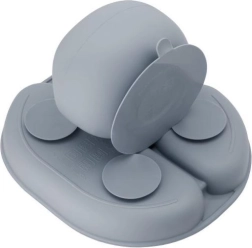 Dank der rutschfesten Saugnäpfe bleiben Schüsseln und Teller an ihrem Platz, was das Risiko von Unordnung während der Mahlzeiten verringert. Der geteilte Teller hilft Kindern zusätzlich, die grundlegenden Regeln des Portions- und Essensverständnisses leichter zu erlernen. Das weiche Silikon-Lätzchen mit tiefem Auffangbehälter schützt die Kleidung effektiv vor Verschmutzungen.