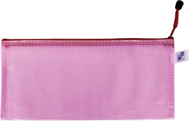 Praktischer rosa Umschlag mit Reißverschluss ist ideal für die sichere Aufbewahrung von Dokumenten, Geld und Unterlagen. Hergestellt aus Kunststoff und verstärkt mit Netzgewebe für zusätzliche Haltbarkeit.