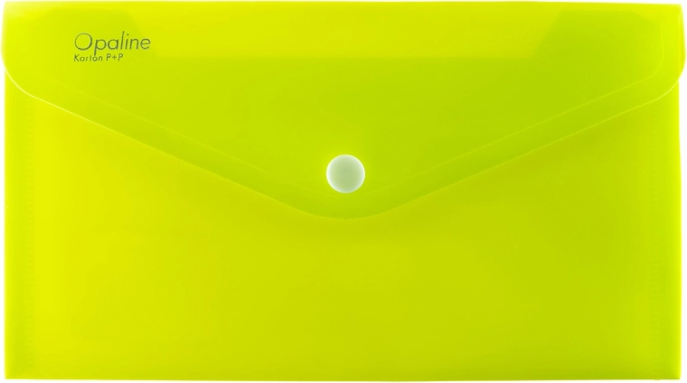 Die leichte und robuste DL-Dokumententasche Opaline ist ideal für Ordnung im Büro, in der Schule und zu Hause. Polypropylen mit einer Stärke von 180 μm schützt vor Knicken und Verschmutzung, während der Druckknopf den Inhalt sicher im Inneren hält. Die stylische limettengrüne Farbe erleichtert das schnelle Wiederfinden zwischen anderen Unterlagen.