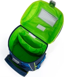 Das Hauptfach fasst alle Schulutensilien und behält dank innerer Verstärkung seine Form. Die Fronttasche ist ideal für Brotzeit und Kleinigkeiten, zusätzliche Sicherheit bietet die Metallschließe mit integriertem Reflexelement sowie reflektierende Details rundum. Der stabile Boden schützt den Inhalt vor Umkippen und Ausschütten, zusätzliche Haken erleichtern das Fixieren der Riemen.