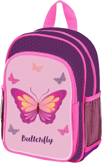 Kleinerer Rucksack geeignet für Kinder im Alter von 3 bis 6 Jahren. Perfekt für Freizeitaktivitäten mit einer großen Tasche, einer kleineren Tasche für die Jause und Seitentaschen für die Trinkflasche.