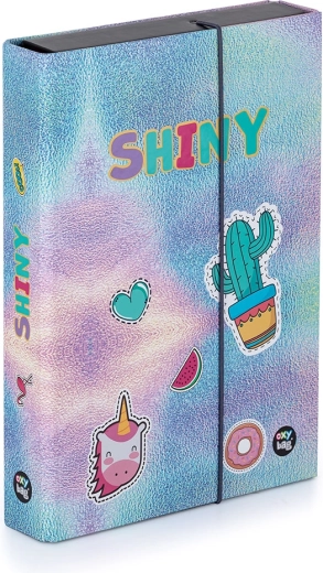 Die A5 Jumbo OXY Style Mini Shiny Box für Hefte ist ein unverzichtbarer Bestandteil der Ausstattung eines jeden Schülers. Sie besteht aus robustem laminiertem Material, das den Inhalt vor Beschädigungen schützt. Der Gummiverschluss sorgt dafür, dass Hefte und Papiere nicht herausfallen. Dank der kompakten Abmessungen und der Rückenbreite von 4 cm lässt sie sich leicht in der Schultasche verstauen.