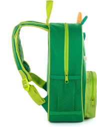 Der leuchtend grüne Rucksack mit dem Schriftzug DINOSAUR motiviert Kinder, ihre Sachen selbst zu tragen, und fällt auf dem Spielplatz ebenso auf wie im Kindergarten.