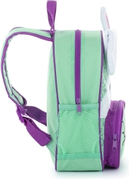 Die praktische Aufteilung erleichtert die Organisation: Hauptfach für größere Sachen, Vordertasche für Snacks und seitliche Netzfächer für die Trinkflasche. Verstellbare Gurte und eine weiche Polsterung sorgen für Komfort im Alltag, während das verspielte Hasenmotiv die kindliche Fantasie anregt.