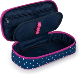 Unter der Klappe finden Sie Platz für lose Kleinigkeiten und Zubehör sowie auf beiden Seiten feste Schlaufen für Marker, Stifte oder Textmarker. Die verschließbare innere Reißverschlusstasche bewahrt kleine Gegenstände wie Radiergummis, Spitzer oder Schlüssel sicher auf.