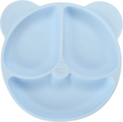 Der Teller aus lebensmittelechtem Silikon mit mehreren Fächern ermöglicht übersichtliches Servieren und unterstützt das selbstständige Essen. Die verspielte Bärenform begeistert Kinder.