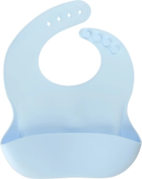 Weiches Silikon-Lätzchen mit verstellbarem Verschluss und tiefer Auffangstasche fängt zuverlässig Krümel und Flüssigkeiten auf und schützt die Kleidung bei jeder Mahlzeit.