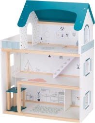 Das Puppenhaus Barbora ist die perfekte Wahl für kleine Liebhaber imaginärer Welten. Dieses Holzhaus mit ausgeklügelten Details umfasst alle wichtigen Räume: Küche, Bad, Wohnzimmer, Schlafzimmer mit Balkon und funktionierendem Aufzug. Es bietet nicht nur einen optischen Eindruck, sondern fördert auch Kreativität und feinmotorische Fähigkeiten.