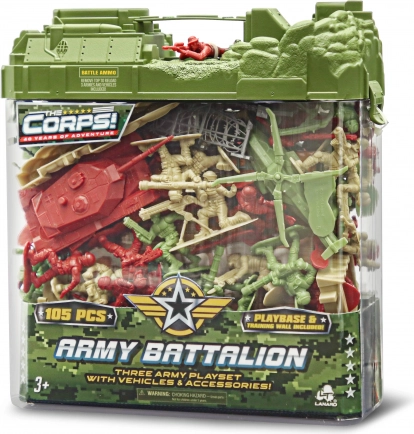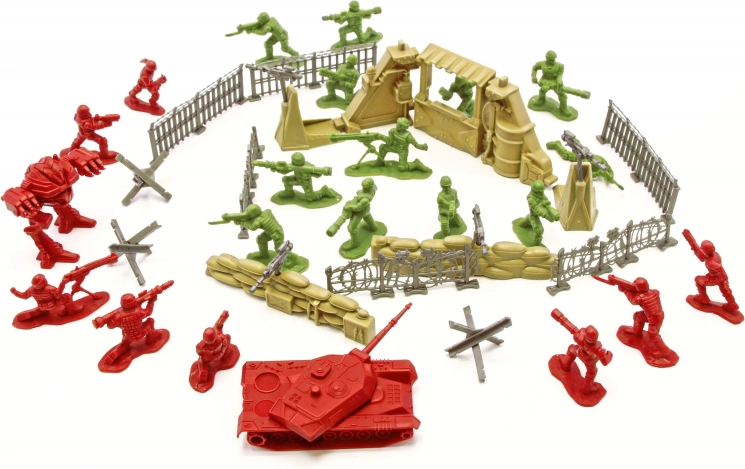 Der Set von Figuren Soldaten enthält 105 Plastikfiguren in einer praktischen Verpackung. Ein ideales Geschenk für kleine Enthusiasten von militärischen Abenteuern.