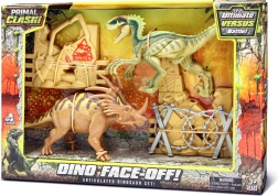 Entdecken Sie spannende Kämpfe mit dem Primal Clash! kämpfende Dinosaurier-Set. Dinosaurier in der Größe von 17 cm aus strapazierfähigem Material bieten großen Spaß und ein bewegliches Kiefer sorgt für Realismus.