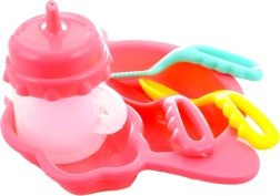 Schnuller, Fläschchen, Tellerchen und Löffel bieten alles zum Füttern und Beruhigen des Babys. Einfach auspacken und losspielen.
