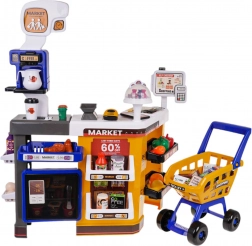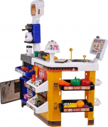 Dieser detailreiche Kindersupermarkt verwandelt das Kinderzimmer in ein echtes Geschäft. Das Set enthält eine Kasse mit Kartenleser, Scanner, Mikrofon, Waage, öffnendem Kühlschrank, Regalen und vielen realistischen Lebensmittelattrappen. Dank Licht- und Soundeffekten wird das Spiel noch spannender und fördert Fantasie und soziale Fähigkeiten.