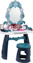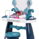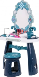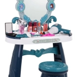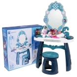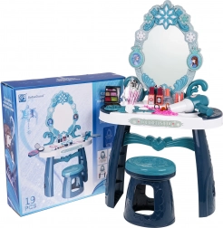 - geeignet für Kinder ab 3 Jahren, .- hergestellt aus hochwertigstem Kunststoff in leuchtenden Farben, .- schön verzierter Spiegel, .- Soundeffekte, .- Lichteffekte, .- geräumige Tischplatte des Frisiertischs, .- stabile Konstruktion, .- bequemer Hocker, .- Föhn mit Trockengeräuschen, .- große Auswahl an Schminkutensilien. .