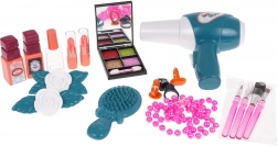 - Frisiertisch, .- Hocker, .- Föhn, .- Perlen, .- Armband, .- 2 x Lippenstift-Attrappe, .- Nagellack-Attrappe, .- Parfum-Attrappe, .- Kosmetikbehälter, .- 2 x Haarspange, .- Haarbürste, .- 4 x Ring, .- Kosmetiktäschchen mit Spiegel, Pinsel und Lidschatten-Attrappe, - 4 x Schminkpinsel, . |