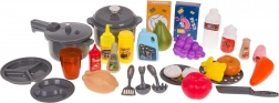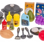 Mit 52 Accessoires, darunter Töpfe, Pfannen, Utensilien, Gewürze und Lebensmittel, sowie mit Regalen und Haken haben Kinder alles griffbereit.