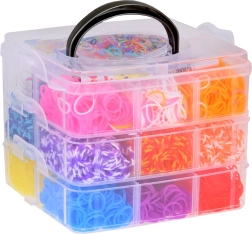 Dieses umfassende LOOM BAND Set bietet alles, was Sie zur Herstellung bunter Schmuckstücke und Accessoires benötigen. Die Gummibänder in 15 schönen Farbtönen sind übersichtlich im transparenten Organizer verstaut, sodass sie sich nicht vermischen und das Arbeiten stets bequem und übersichtlich bleibt. Dank der Haken, Schleudern und zwei Webrahmen erstellen Sie mühelos einfache bis komplexere Muster.