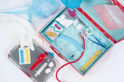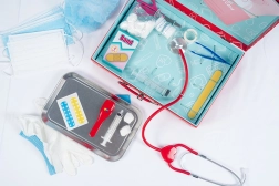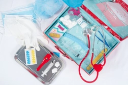 Der Arztkoffer enthält 27 Teile medizinische Ausrüstung für realistisches Rollenspiel.