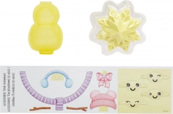 Enthalten sind formbarer „Schnee“ und lustige Formen mit Dekorationen, mit denen Sie Ihren eigenen Schneemann gestalten und nach Belieben verzieren können.