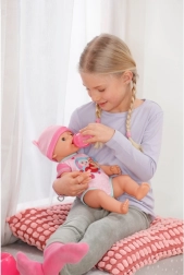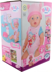 Emma ist eine niedliche BABY born Puppe mit realistischen Funktionen, die Kinder lieben. Sie trinkt Wasser aus dem Fläschchen, öffnet und schließt die Augen, wenn man den Schnuller dreht, kann Tränen weinen und Pipi in die Windel oder aufs Töpfchen machen. Dank der robusten Verarbeitung ist sie auch zum Baden geeignet – so macht das Spielen in der Wanne und außerhalb besonders viel Spaß.