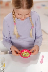 Die umfangreiche Ausstattung inklusive Fläschchen, Schnuller, Windel, Teller, Löffel und weiterem Zubehör fördert Fantasie, Umziehen und Alltagsszenen.