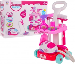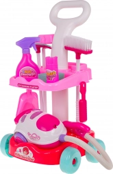 Dieses Kinder-Reinigungsset bietet alles, was kleine Haushaltshelfer brauchen: einen stabilen Wagen auf Rollen mit zwei Ablagen, einen interaktiven Staubsauger mit Licht- und Soundeffekten sowie eine große Auswahl an Zubehör. Dank der sicheren Ausführung aus strapazierfähigem Kunststoff und der attraktiven Farben macht das Nachahmen echter Reinigungsarbeiten Spaß und vermittelt Ordnungssinn.