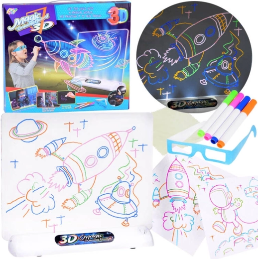 Entfesseln Sie die Kreativität Ihres Kindes mit der LED-Leuchttafel für leuchtende Neonzeichnungen. Diese kreative Tafel ermöglicht es jungen Künstlern, beeindruckende Werke zu schaffen oder Vorlagen aus dem Set nachzuzeichnen. Mit den neonfarbenen Markern und enthaltenen 3D-Brillen wird das Zeichnen zu einem faszinierenden Erlebnis.