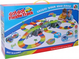 Diese flexible Rennbahn begeistert kleine Rennfahrer mit endlosen Aufbaumöglichkeiten. Dank der biegsamen Elemente lässt sich die Strecke leicht biegen, drehen und umbauen – so kommt keine Langeweile auf. Zwei Durchfahrtstunnel, die Weiche und die Drehscheibe sorgen für mehr Action und realistische Spielsituationen.