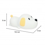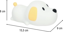 Die Silikon Nachtlichtlampe in Form eines Hundes ist das ideale Accessoire für das Kinderzimmer, da sie mit ihrem sanften Licht ein Gefühl der Sicherheit bietet. Dank des weichen Silikons ist die Lampe sicher für Kinder, die sie berühren, quetschen oder umarmen können. Die Lampe bietet zwei Lichtmodi: warmweiß und kaltweiß, sodass die Beleuchtung an die Bedürfnisse des Kindes angepasst werden kann. Die Helligkeit lässt sich einfach durch Drücken auf die Nase des Hundes regeln.