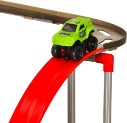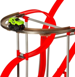 Das in der Verpackung enthaltene grüne Auto ist speziell für das Bewältigen extremer Strecken entwickelt. Sein Motor wird von zwei AAA-Batterien (nicht im Lieferumfang enthalten) angetrieben und sorgt für eine reibungslose und einfache Fahrt über die komplexen Abschnitte der Strecke.