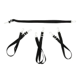 Verstellbare Riemen mit Metallschnallen halten die Ziele sicher an Ort und Stelle. Strapazierfähiges Gewebe hält auch wildere Duelle aus.