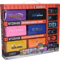 Wir präsentieren Ihnen Containerstadt, ideal für kleine Baumeister und Autosammler. Das Set enthält: