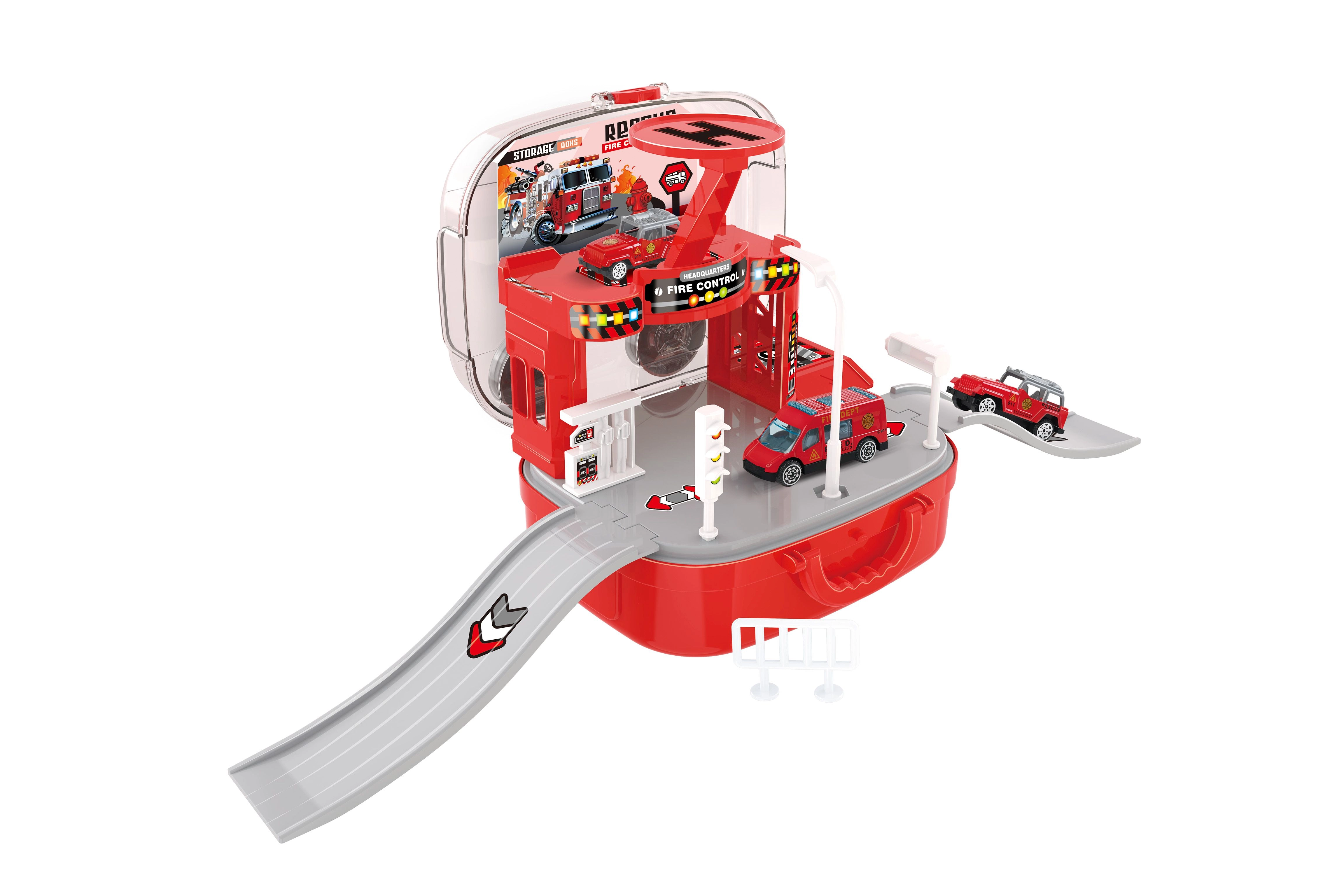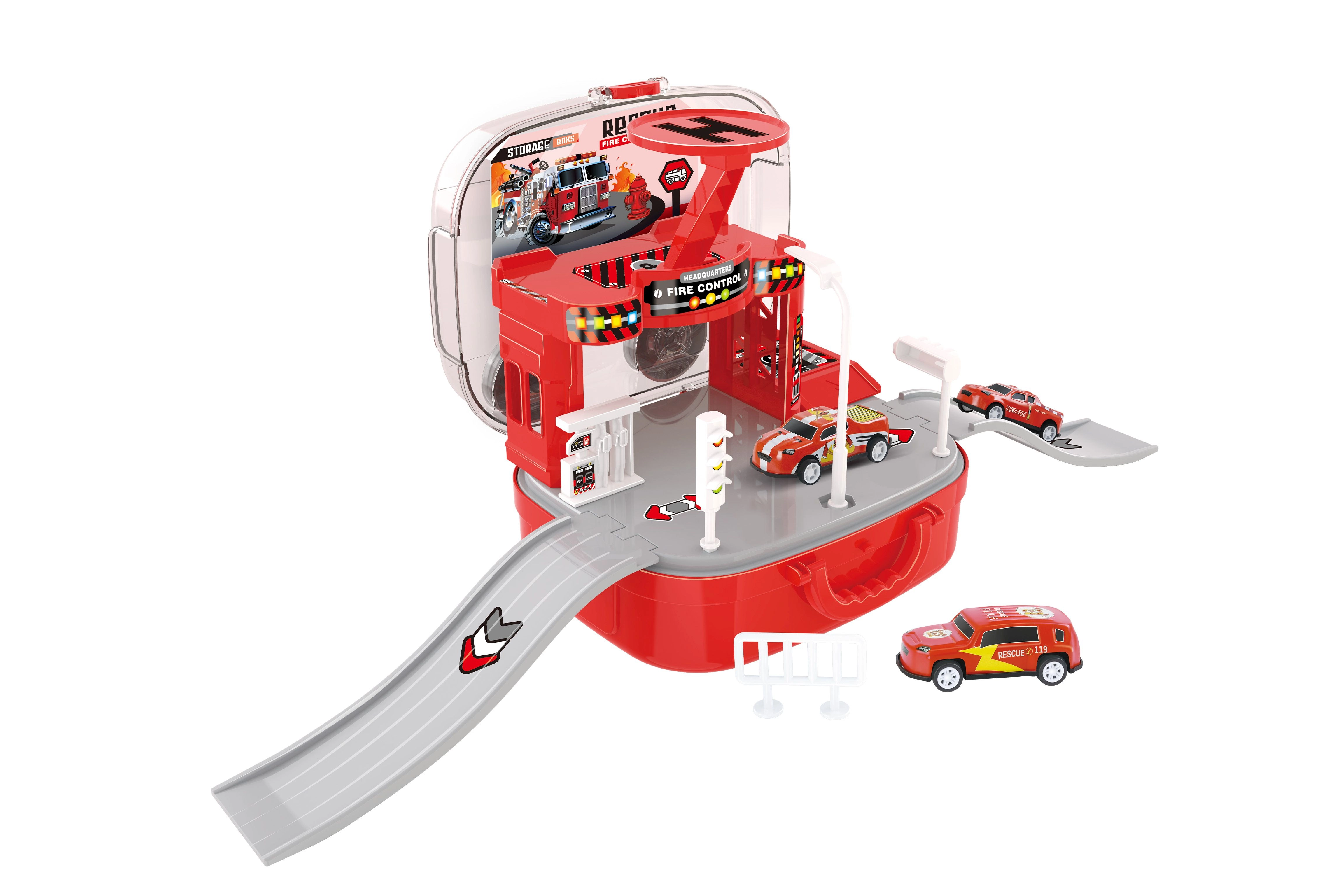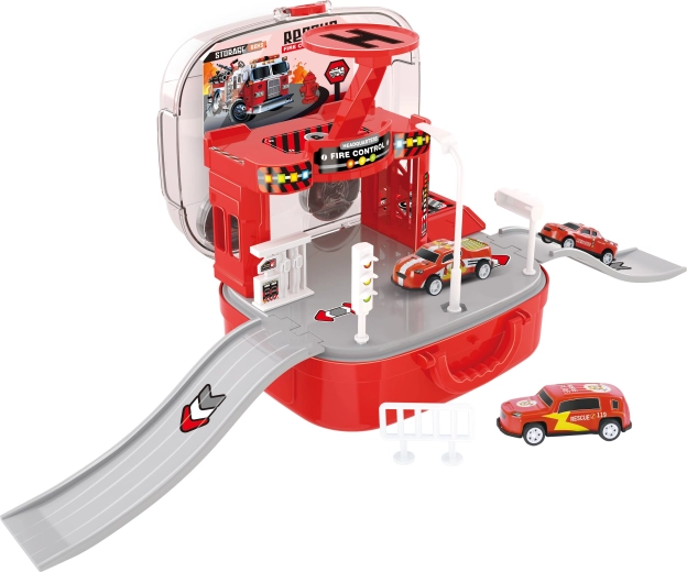 Diese durchdachte Feuerwache im Koffer begeistert kleine Rettungsfans. Kinder können eigene Einsätze gestalten, Fahrzeuge mithilfe des manuellen Aufzugs zwischen den Etagen bewegen und den Hubschrauber für schnelle Missionen einsetzen. Dank des praktischen Koffers lässt sich die gesamte Station nach dem Spielen einfach schließen und mitnehmen.