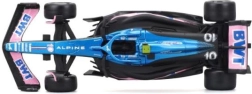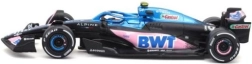 Die blau-rosa Lackierung von BWT Alpine mit detaillierten Logos und Aufdrucken spiegelt den echten Rennwagen A523 originalgetreu wider.