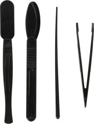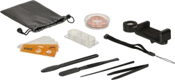 Zum Set gehören zwei vorbereitete Objektträger mit Proben (Entenfedern und Baumwollfasern) und vier weitere leere Objektträger für die eigene Probenvorbereitung. Dieses Gerät ermöglicht es Kindern, ihre eigenen Proben vorzubereiten, was ihr Interesse und Geschick noch mehr engagiert. Im Paket befinden sich auch Grundwerkzeuge, wie eine Pinzette und ein Kunststoffskalpell, für die einfache Vorbereitung eigener Proben.