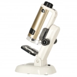 Dieses Mikroskop ist kompakt und leicht tragbar, was es zum idealen Werkzeug für den Einsatz zu Hause oder in der Schule macht.