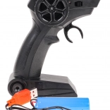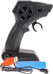 Der intuitive Pistolen-Sender auf 2,4 GHz garantiert ein stabiles, störungsfreies Signal und Steuerung in alle Richtungen: vorwärts, rückwärts, rechts und links. Dank der großen rutschfesten Reifen mit ausgeprägtem Profil klettert der Crawler über Hindernisse und hält die Spur auch auf rutschigem Untergrund.