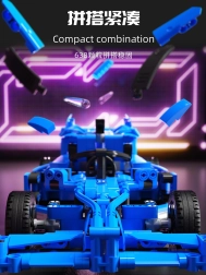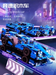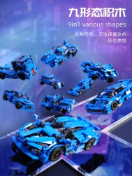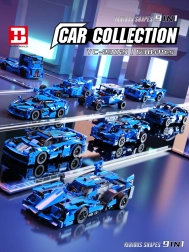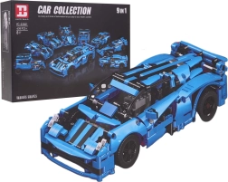 Blaue Sportwagen mit aerodynamischen Formen und detaillierter Ausführung sehen im Regal wie im Einsatz großartig aus. Stylische Aufkleber sind ebenfalls enthalten.