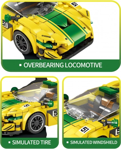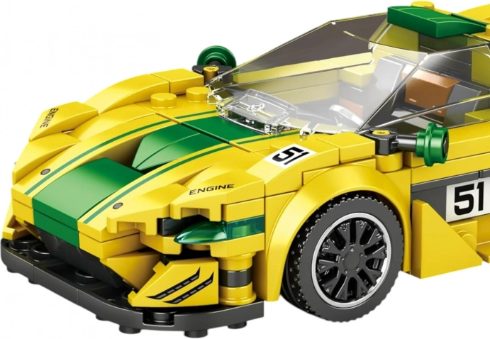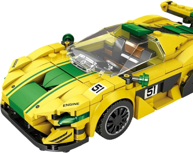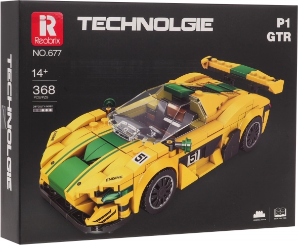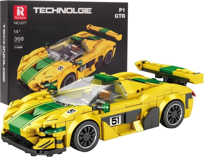 Entdecken Sie das aufregende Sportwagen Baustein-Set Gelb mit 368 Teilen! Dieses Set ermöglicht es Kindern ab 14 Jahren, ein realistisches Modell eines P1 GTR zu konstruieren, komplett mit einer täuschend echten Frontscheibe und Stickern zur individuellen Gestaltung.