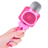 Dieses niedliche Karaoke-Mikrofon für Kinder macht aus jedem Moment eine unterhaltsame Show. Es bietet kabellose Bluetooth-Verbindung, die Möglichkeit zur Aufnahme (bis zu 15 s) mit sofortiger Wiedergabe, 8 vorinstallierte Songs und 5 Rhythmen. Die Bedientasten sind übersichtlich und für Kinder leicht erreichbar.